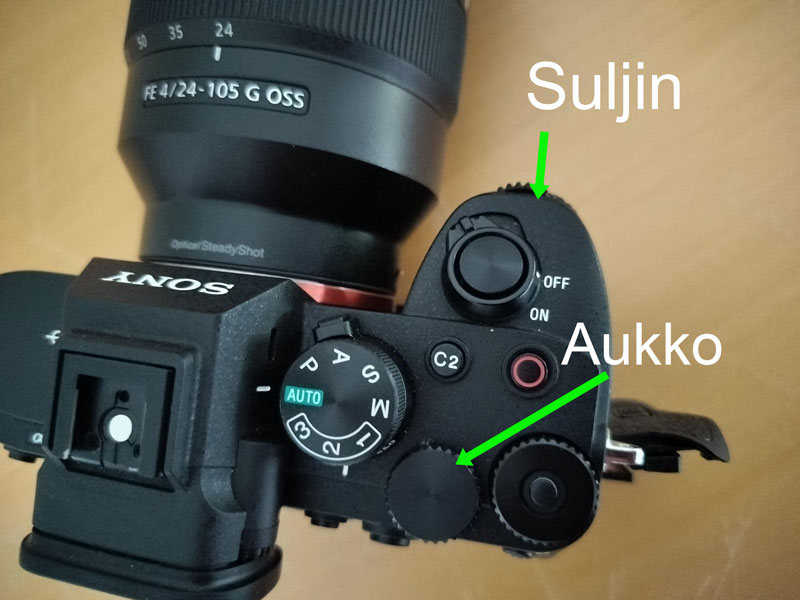 Suljinaikaa muutetaan suljinajan valintakiekosta.