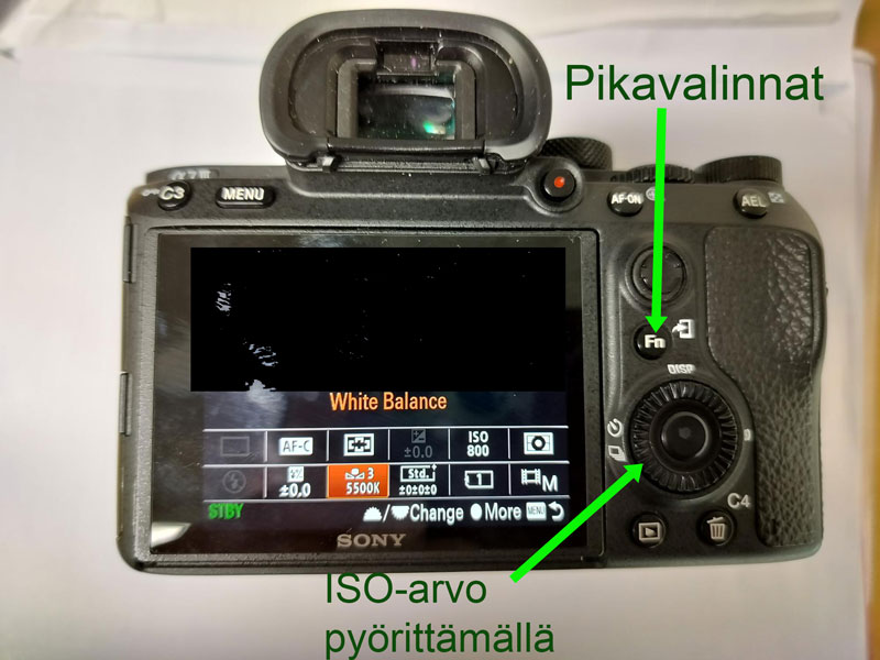 Valkobalanssin säätö löytyy helpoimmin pikavalikosta ( Fn).